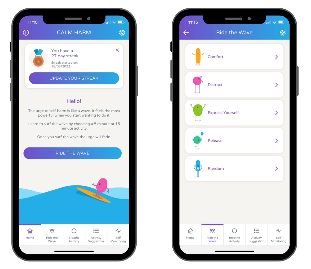The Calm Harm app was created with and for individuals who experience non-suicidal self-harm.