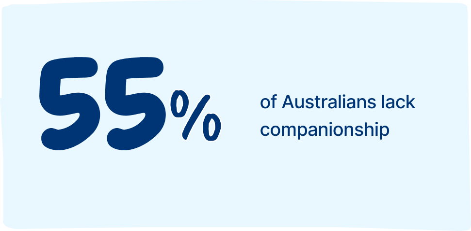 • Around 1 in 4 Australians feel lonely, (likely to be higher since the pandemic)